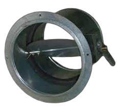 Regulates airflow in HVAC systems with round ducts. Functions as a shut-off damper for ventilation systems. Suitable for residential, commercial, and industrial applications.